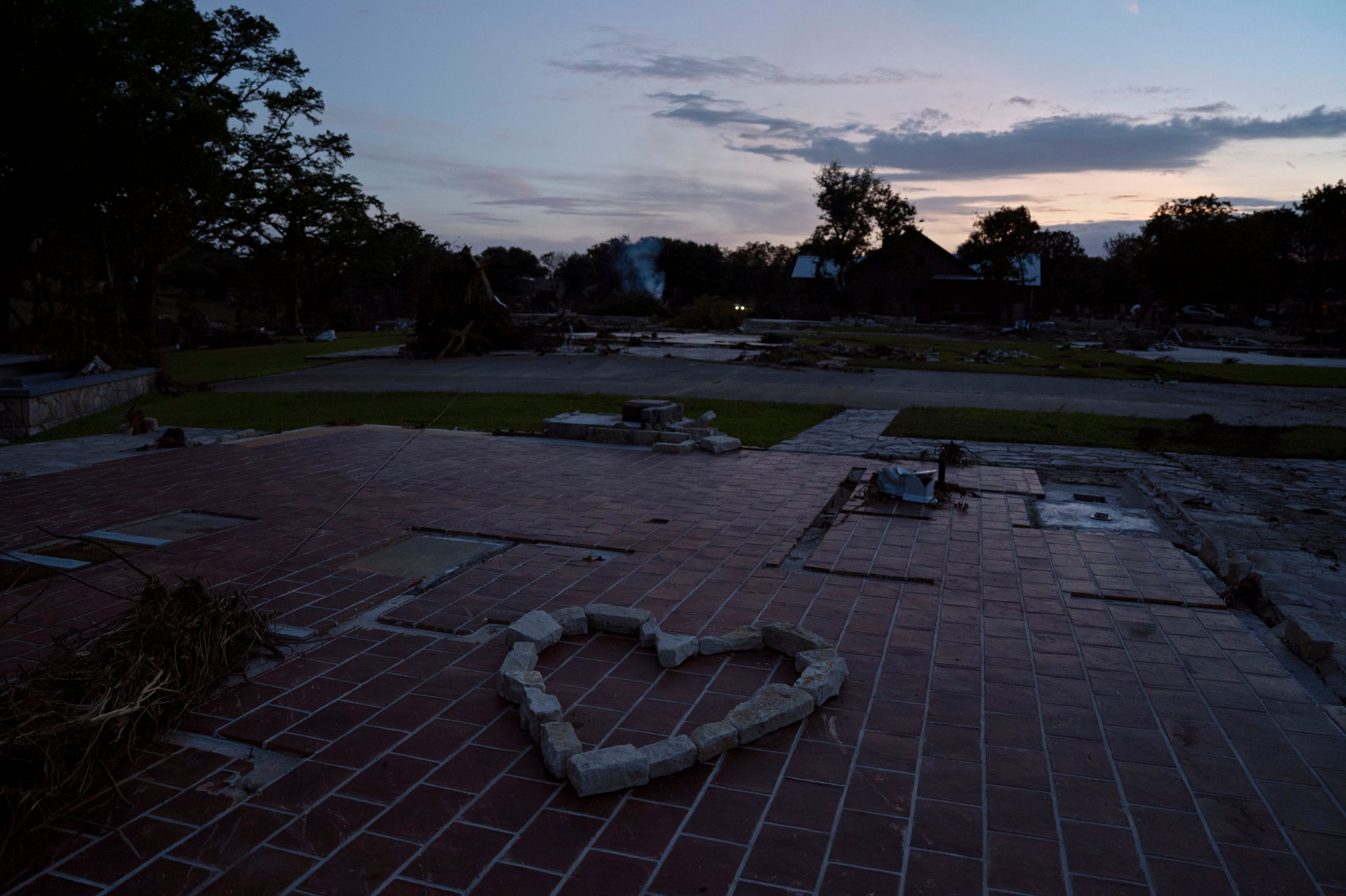 Một trái tim làm từ những mảnh gạch vỡ tại vị trí cabin nơi hai chị em, Blair Harber 13 tuổi và Brooke Harber 11 tuổi tại trại Casa Bonita. Xác của hai đã được tìm thấy nắm tay nhau. (Danielle Villasana/For The Washington Post)