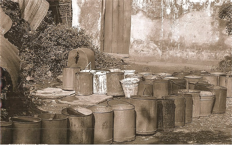 Dân Hà Nội xưa kể thời Pháp “cái máy nước” làm bằng gang. Về sau được làm lại bằng kẽm và xây bệ xi-măng cho sạch sẽ. Ngày ngày dân chúng xách thùng ra xếp hàng rồng rắn lấy nước về dùng. Nhiều nhà đợi đến 1, 2 giờ sáng mới ra gánh nước vì lúc đó đã vãn bớt người.