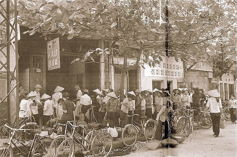 Phụ nữ Hà Nội kể thời đó họ phải “xếp hàng cả ngày” (XHCN) tại những nơi như vầy. Với con mắt của một sứ giả nhà nghề, John Ramsden đã ghi lại một khoảnh khắc bất hủ mà đối với người trong cuộc ắt hẳn phải là rất lâu.