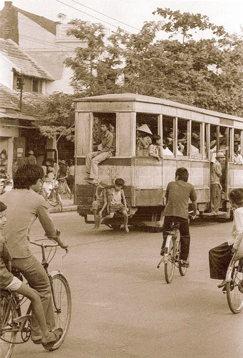 Những chiếc xe điện từ thời Pháp thuộc mấy chục năm sau vẫn còn được sử dụng. Dân Hà thành đứng ngồi chật kín trong và ngoài xe, chẳng thua gì xe điện ngầm ở Tokyo. Chỉ hơi khác ở chỗ xe này chạy chậm hơn, và áo xống hành khách Việt cũng không sạch đẹp bằng người Nhật.