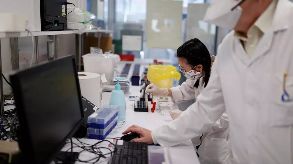 Nhân viên phòng xét nghiệm y tế ở Barrand, Colmar, Pháp. Ảnh chụp ngày 16/04/2020 REUTERS - CHRISTIAN HARTMANN