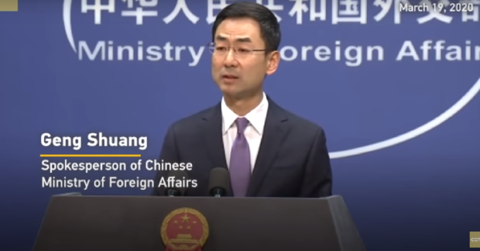 Người phát ngôn Bộ Ngoại giao Trung Cộng , ông Cảnh Sảng, trong một phát biểu trước truyền thông đã đưa ra lời khuyên rằng cộng đồng thế giới nên đồng lòng chống dịch thay vì đổ lỗi hoặc yêu cầu bồi thường.