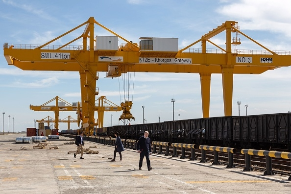 Bức ảnh chụp cảng cạn KTZE-Khorgos Gateway, một trung tâm hậu cần nằm bên phía Kazakhstan của biên giới Kazakhstan-Trung Cộng , vào ngày 15 tháng 4 năm 2019.